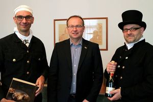 Besonderen Neujahrsbesuch von zwei "Glücksbringern" erhielt Bürgermeister Mag. Johannes Waidbacher am 5. Jänner 2015 im Braunauer Rathaus: Rauchfangkehrermeister Andreas Obojes (li.) und Rauchfangkehrermeister Herbert Lackner (re.) überbrachten dem Stadtoberhaupt die besten Wünsche für das neue Jahr 2015.